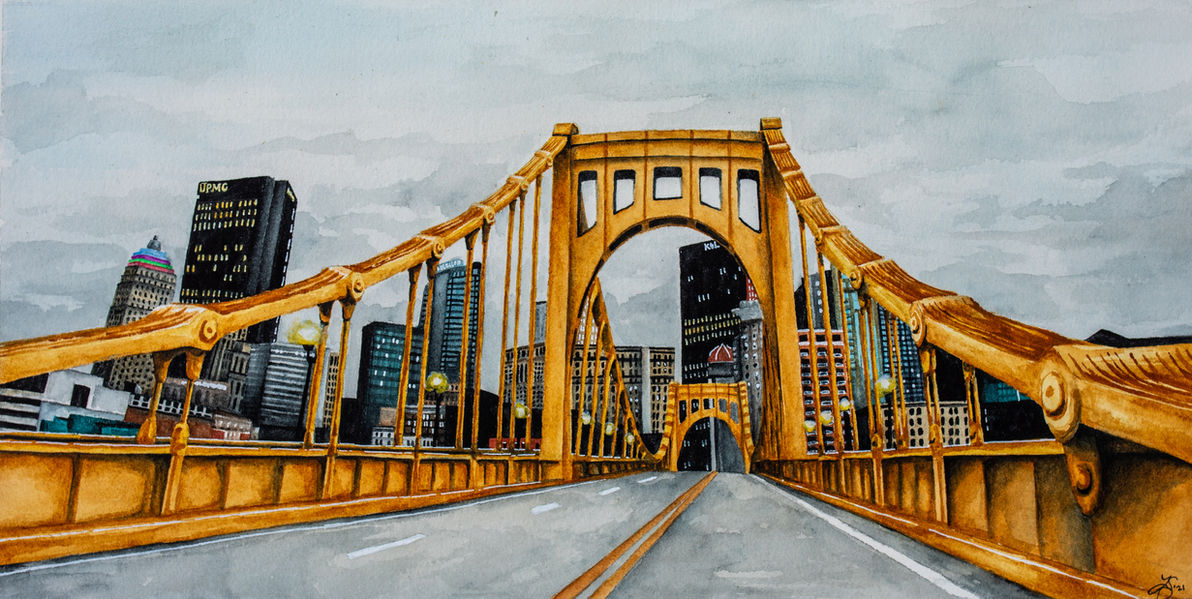 Laura dove into painting Pittsburgh during quarantine when she would drive and photograph the quiet city. Excited by the constant exploration and hometown connection, the Pittsburgh series continues to grow. Some of her favorite scenes to paint are the many Pittsburgh bridges, restaurants, and gloomy & foggy nights in the city.